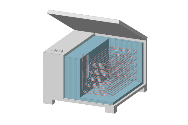 Eisspeicher im Keller stellen Energie an sehr kalten Wintertagen bereit und sorgen so auch bei niedrigen Temperaturen für eine konstante Wärmeversorgung.