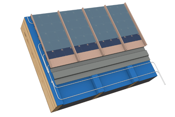 Die PV- und Wärmetauschermodule passen sich optisch an die denkmalgeschützte Dachlandschaft an – mit Varianten in Kupfer- und Schieferoptik.